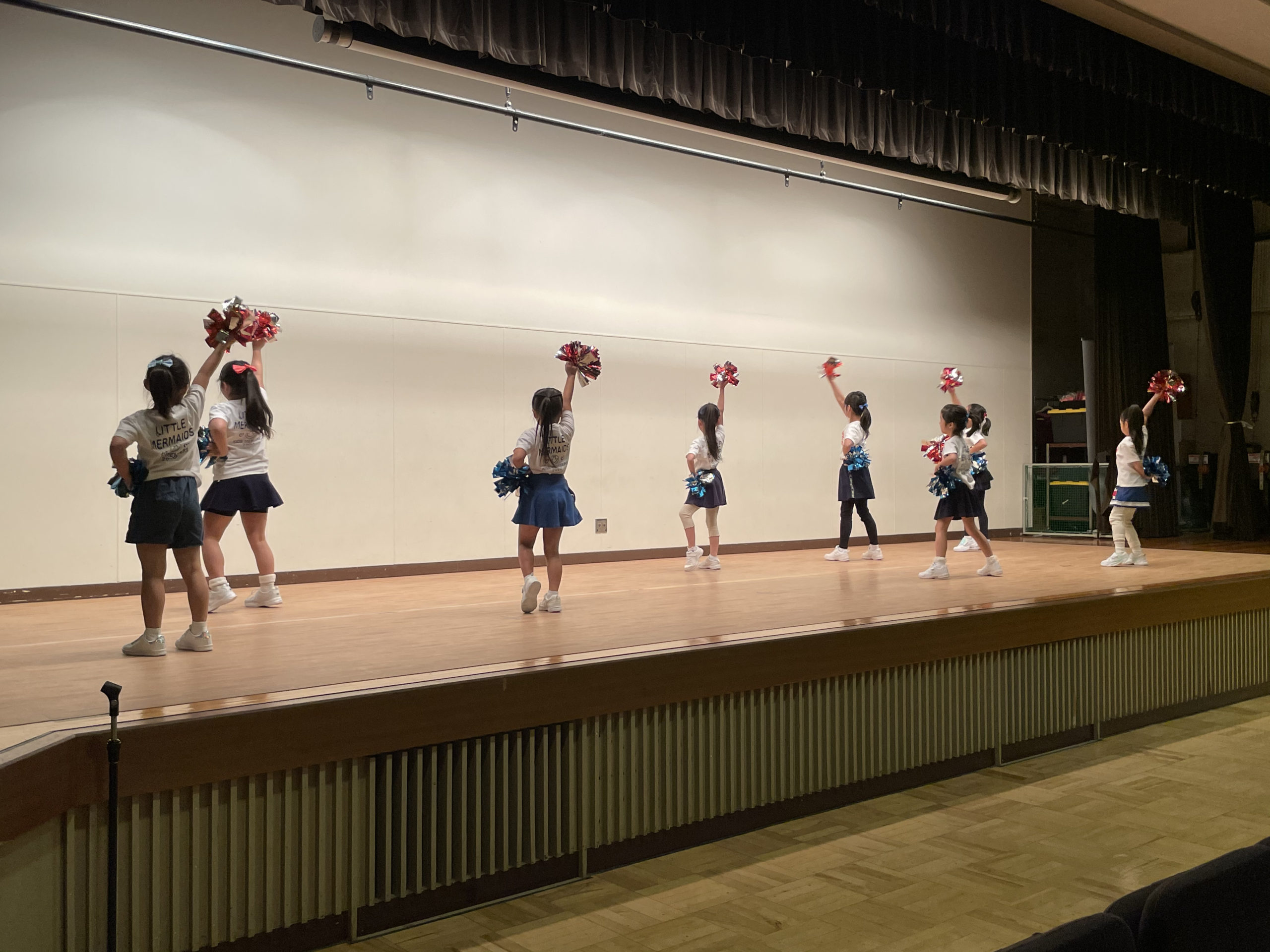幼稚園(年中・年長)クラス、小学生クラスの2部制を基本としていますが、出演前のリハーサル等では、幼稚園、小学生 合同のレッスンとなる場合がございます。